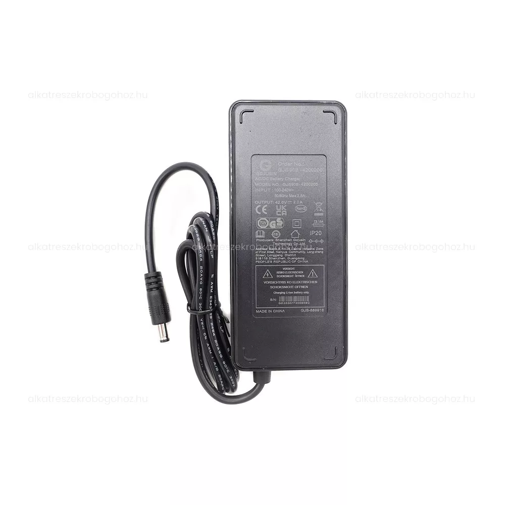 1 db 42V 2A akkumulátortöltő (a hálózati csatlakozókábel kiszereléstől függően eltérhet)